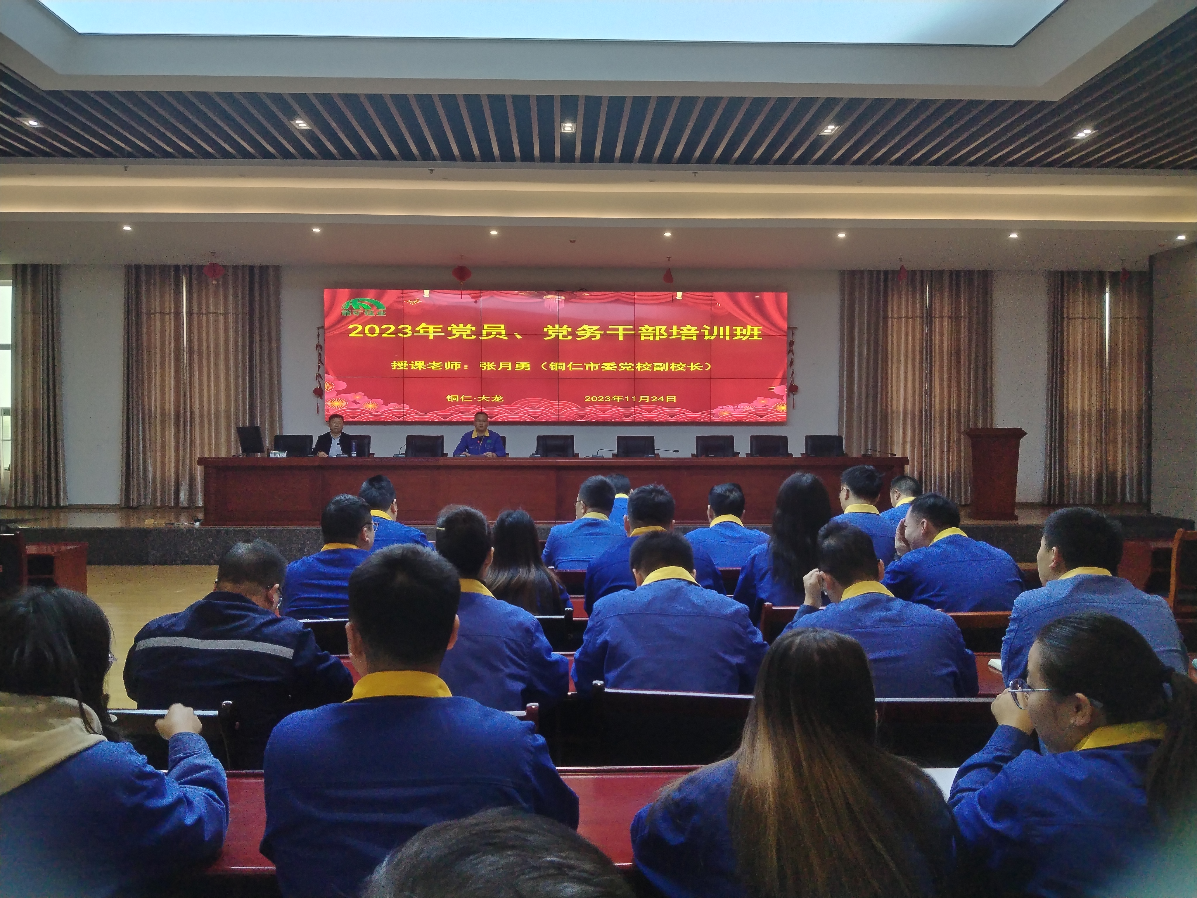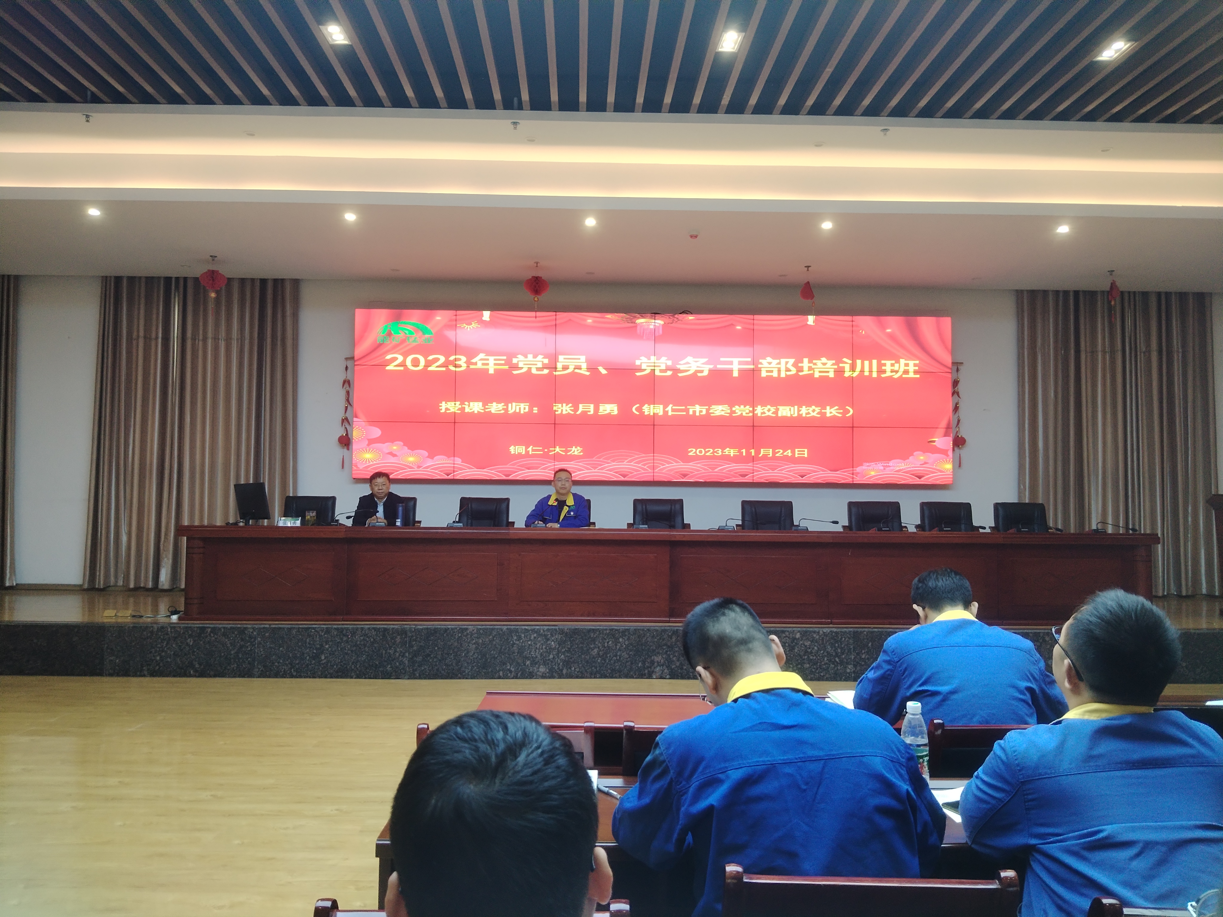本網(wǎng)訊 為全面落實新時代黨的建設(shè)總要求,提升黨員和黨務(wù)干部政治素質(zhì)、業(yè)務(wù)能力。11月24日下午,能礦錳業(yè)舉辦黨員、黨務(wù)干部培訓(xùn)班,邀請銅仁市委黨校副校長張月勇作“以中國式現(xiàn)代化推進中華民族偉大復(fù)興”的專題授課,40余名黨員、黨務(wù)干部參加培訓(xùn)。黨委委員、紀委書記樊志作開班講話,黨委委員、副總經(jīng)理周圍作培訓(xùn)總結(jié)。