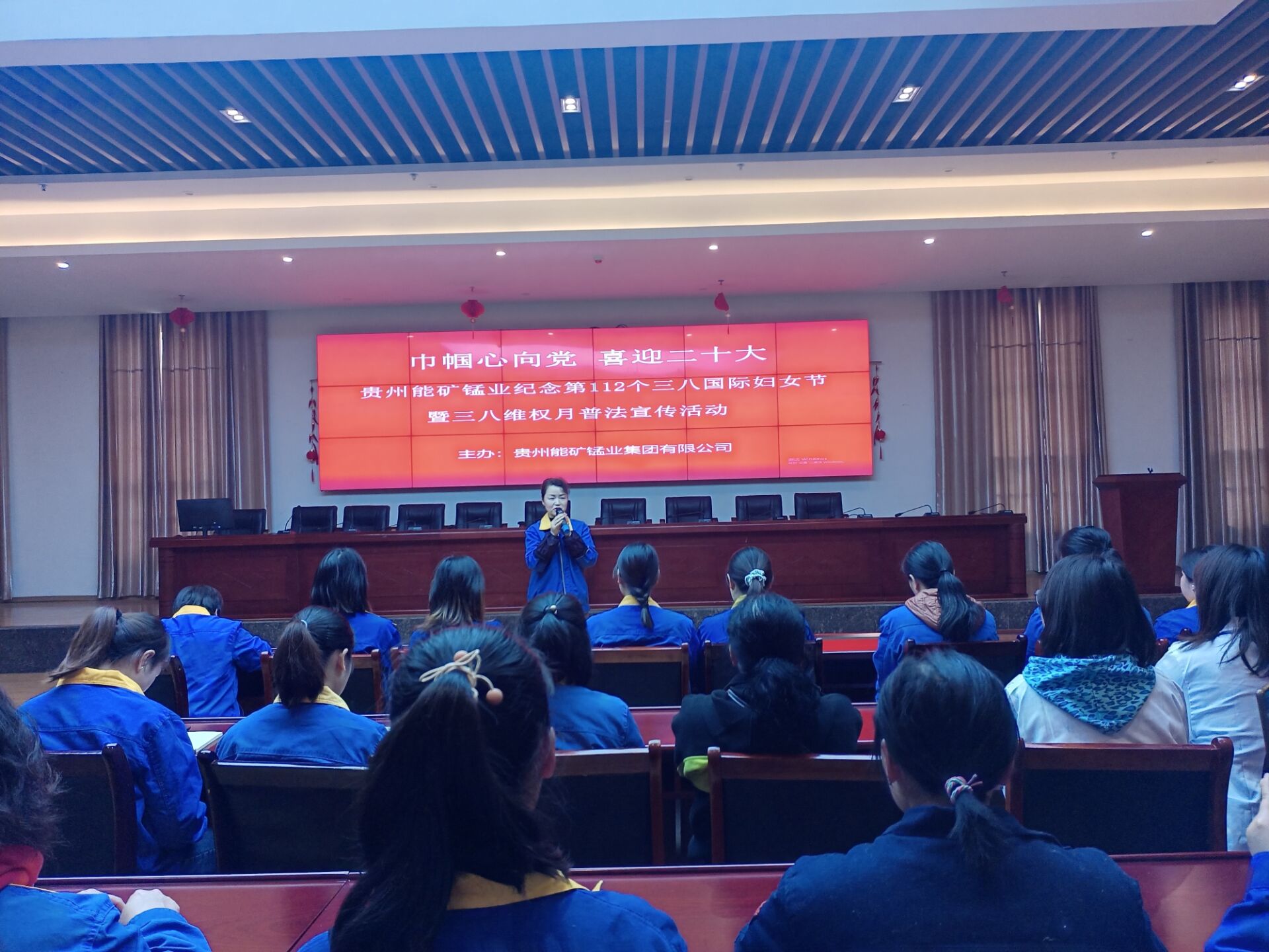2022年3月8日是“三八”國際婦女節112周年,為了營造溫暖濃厚的節日氛圍,激勵廣大女職工全面提高自身素質,能礦錳業公司工會組織開展了“巾幗心向黨 攜手新征程”為主題的三八國際婦女節暨“三八”維權月普法宣傳系列活動。為了引導廣大婦女提高法律意識切實維護婦女兒童合法權益下午兩點,能礦錳業工會女工委組織公司80余名女工,圍繞貴州省女職工勞動保護特別規定》《婦女權益保障法《反家庭暴力法》等法律法規宣講及座談會公司黨委書記、董事長肖居廣到場致辭。