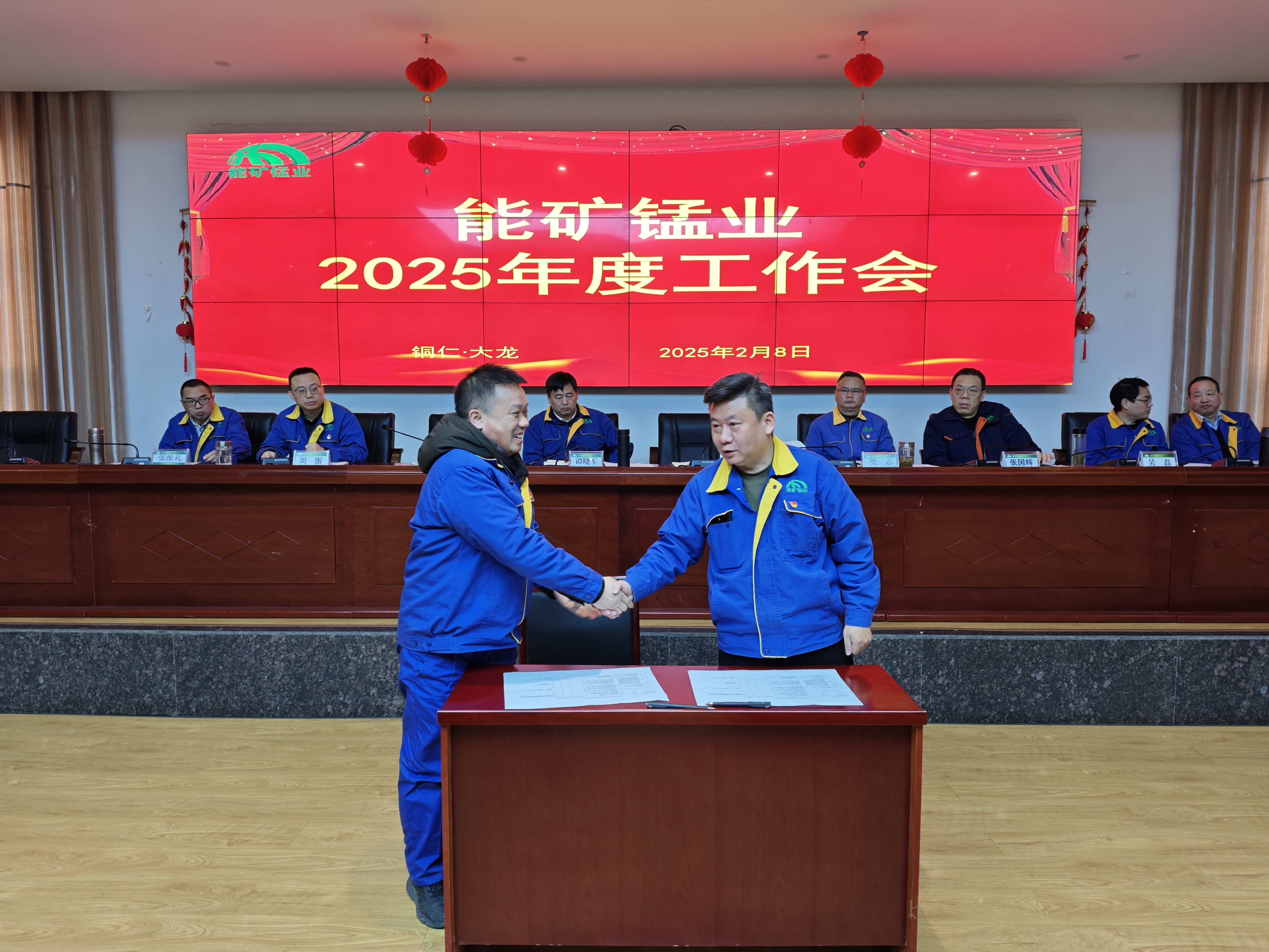 本網訊 2月8日,能礦錳業召開2025年度工作會,公司黨委書記、董事長譚曉軍同志出席會議并講話。會議由公司黨委副書記、總經理楊曲波同志主持,黨政班子成員及60余名干部職工參加。