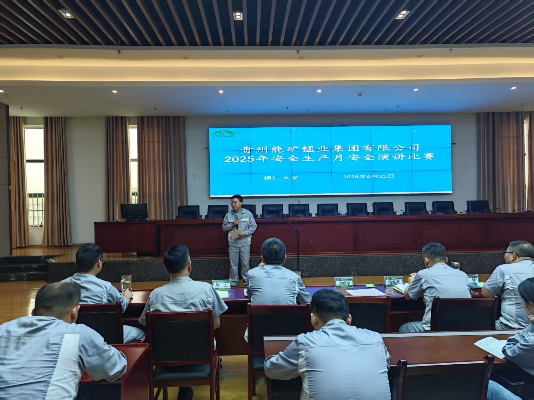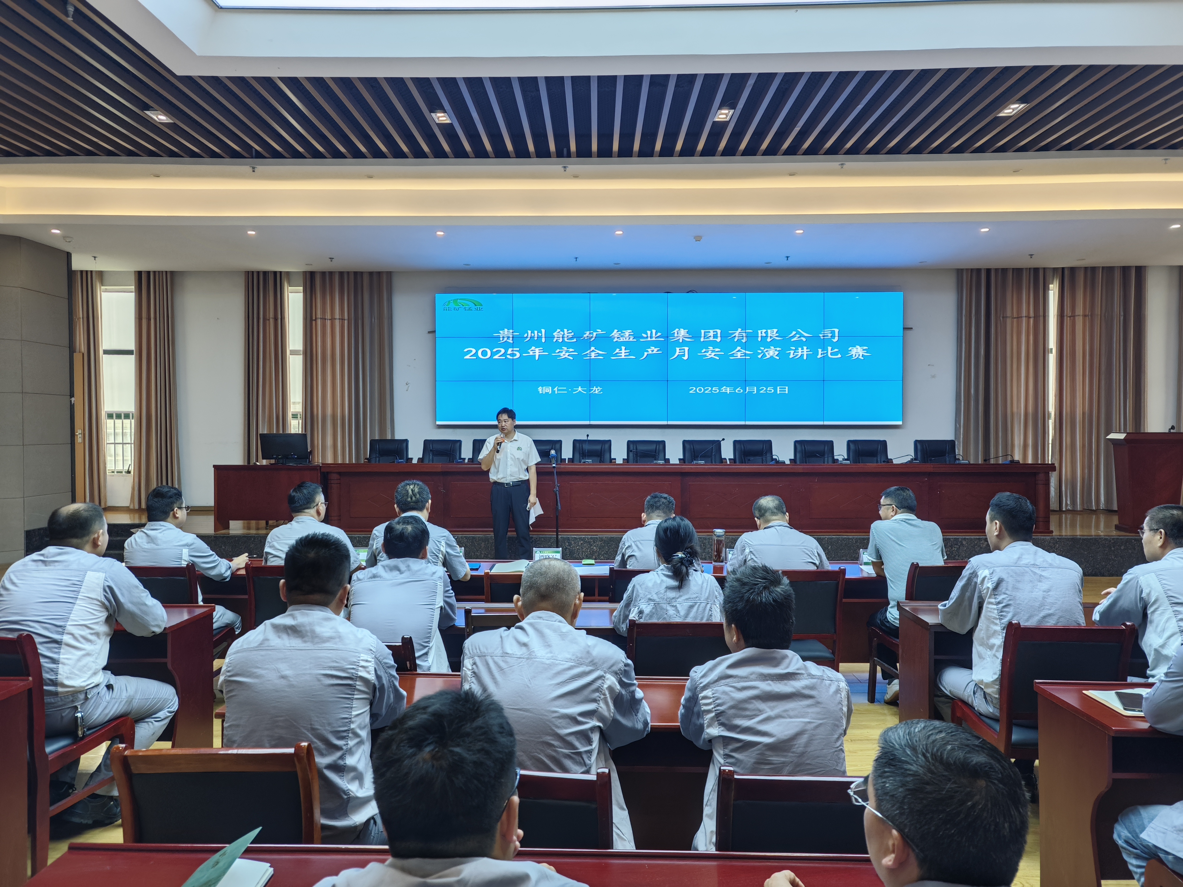 本網(wǎng)訊 6月25日,能礦錳業(yè)舉行安全生產(chǎn)月演講比賽,西南能礦總經(jīng)理助理、能礦錳業(yè)黨委書記、董事長(zhǎng)譚曉軍致辭,黨委委員、副總經(jīng)理周鋒作點(diǎn)評(píng),14名參賽選手參加演講。