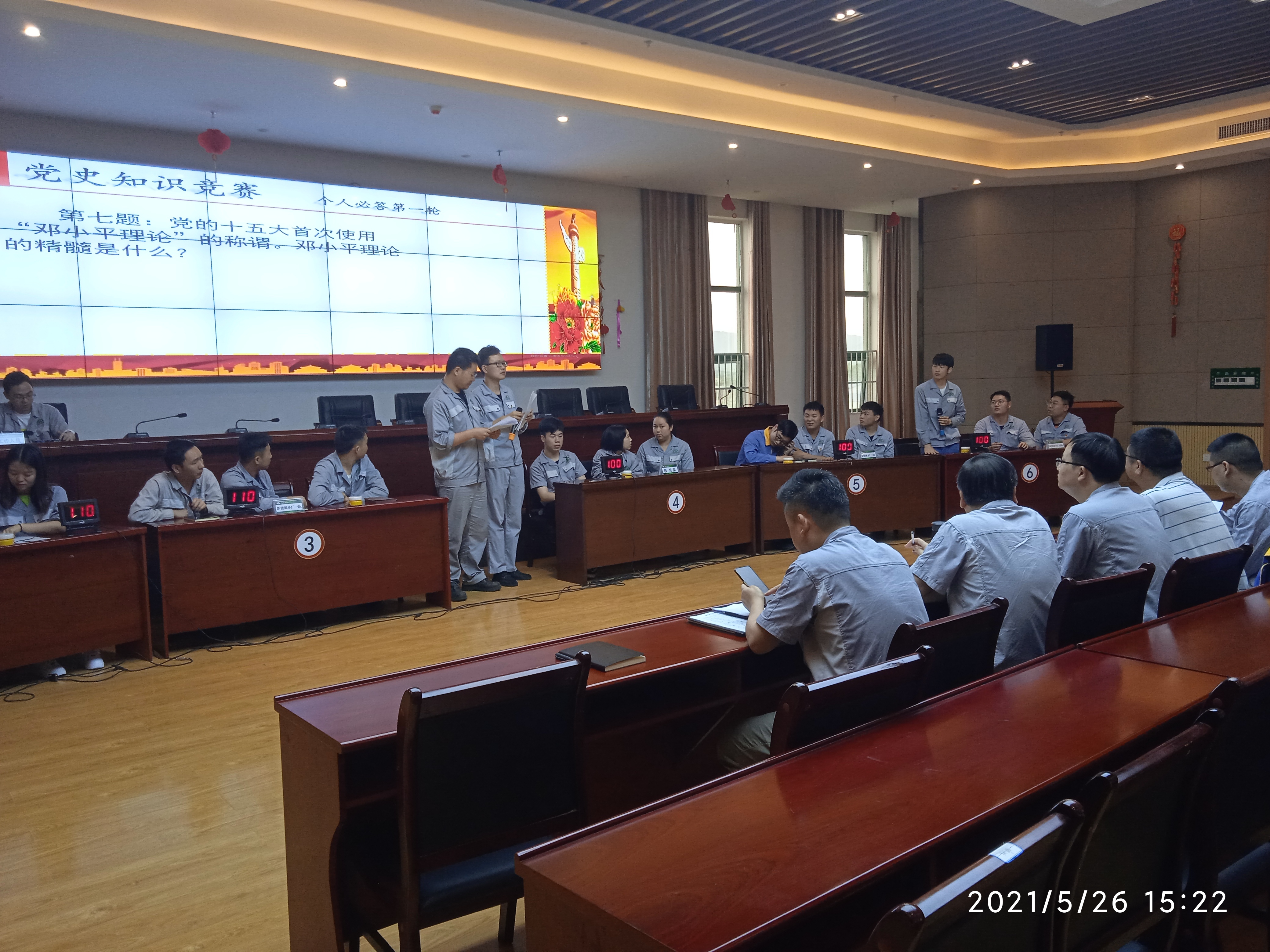 本網訊 5月26日下午,能礦錳業舉辦黨史學習教育和“牢記殷切囑托、忠誠干凈擔當、喜迎建黨百年”專題教育知識競賽,6個參賽隊經過激烈角逐,化驗室隊斬獲頭角,公司黨委書記、董事長肖居廣對各參賽隊進行了點評。