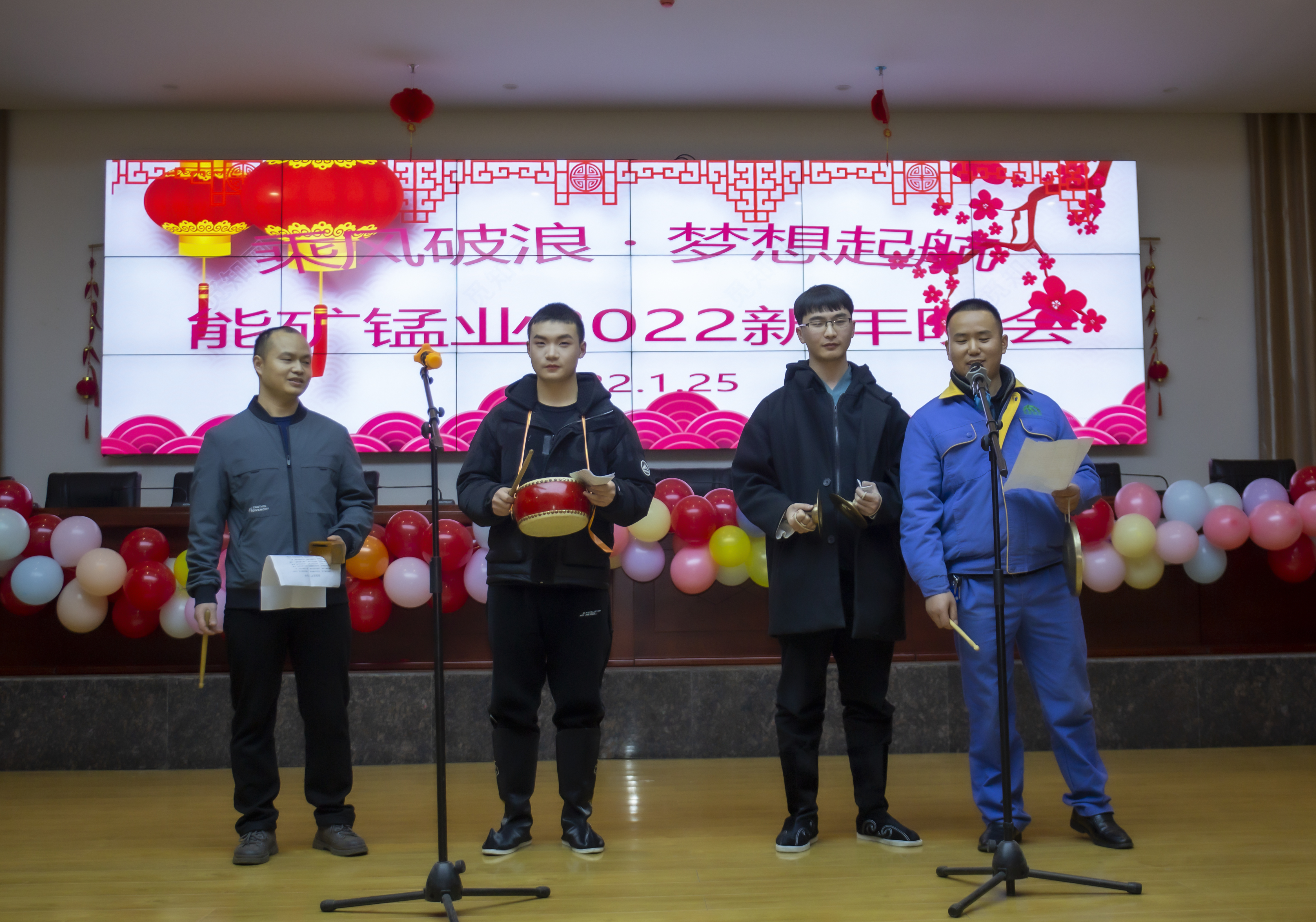 自2014年以來,該公司每年臨近春節前,組織職工自編自排文藝節目,為職工送上豐盛爽心的文藝晚宴。聯歡會開始前,肖居廣致新年辭時說,過去的一年,是能礦錳業在曲折艱難中奮進的一年,克服了限電限產、原燃料上漲、人員流動大等諸多困難,電解二氧化錳、高純硫酸錳、電解金屬錳產量質量取得歷史性跨越,產品實現正現金流,減虧控虧成效明顯。這是全公司干部職工頑強拼搏、不懈奮斗的結果。他飽含深情地說,感謝職工家屬背后的支持和默默付出,借此機會給全公司干部職工及家屬拜個早年,并預祝晚會取得圓滿成功。